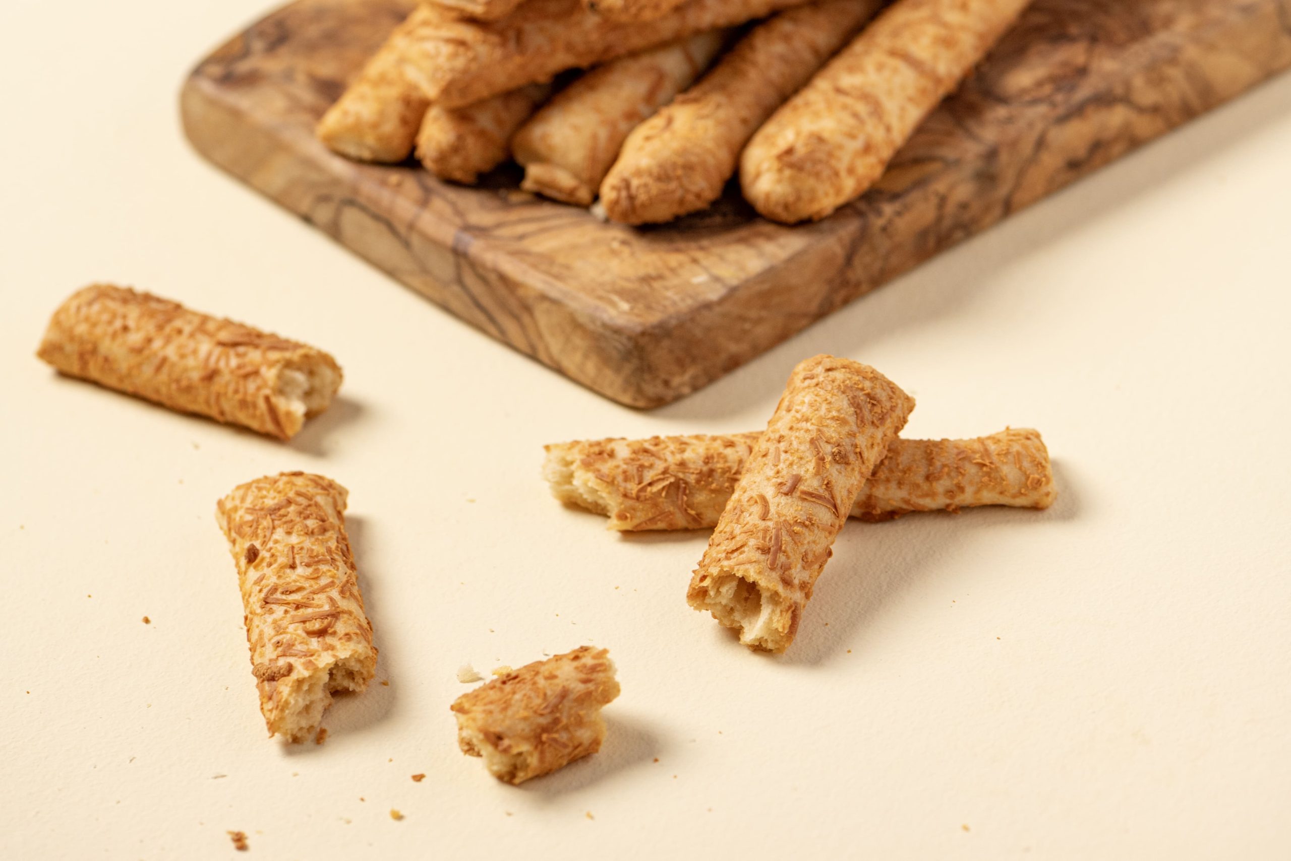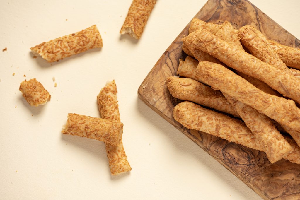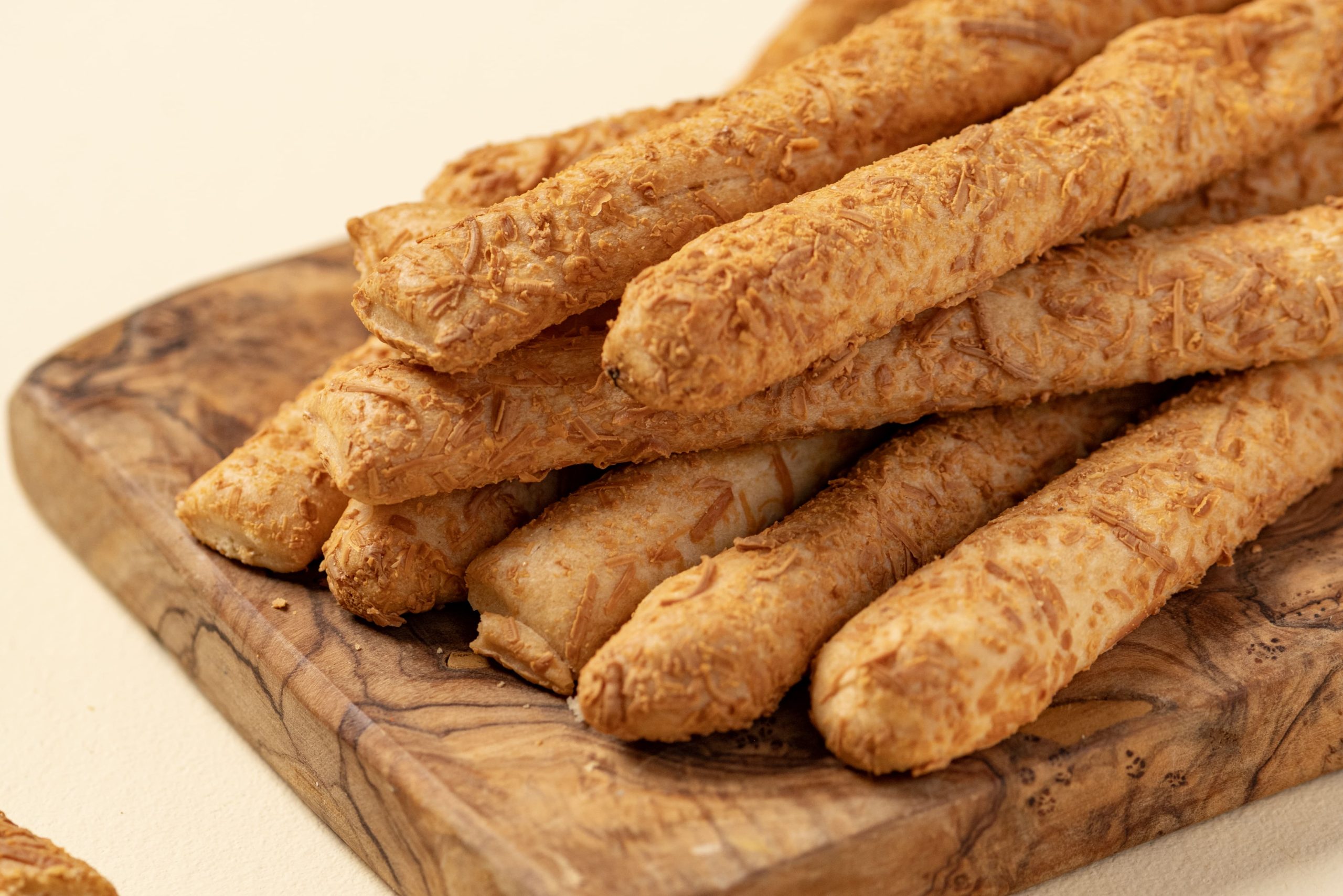 Handmade bread sticks with selected cheese, offering rich flavor and a distinctive crunch. Made with pure ingredients for an authentic taste.