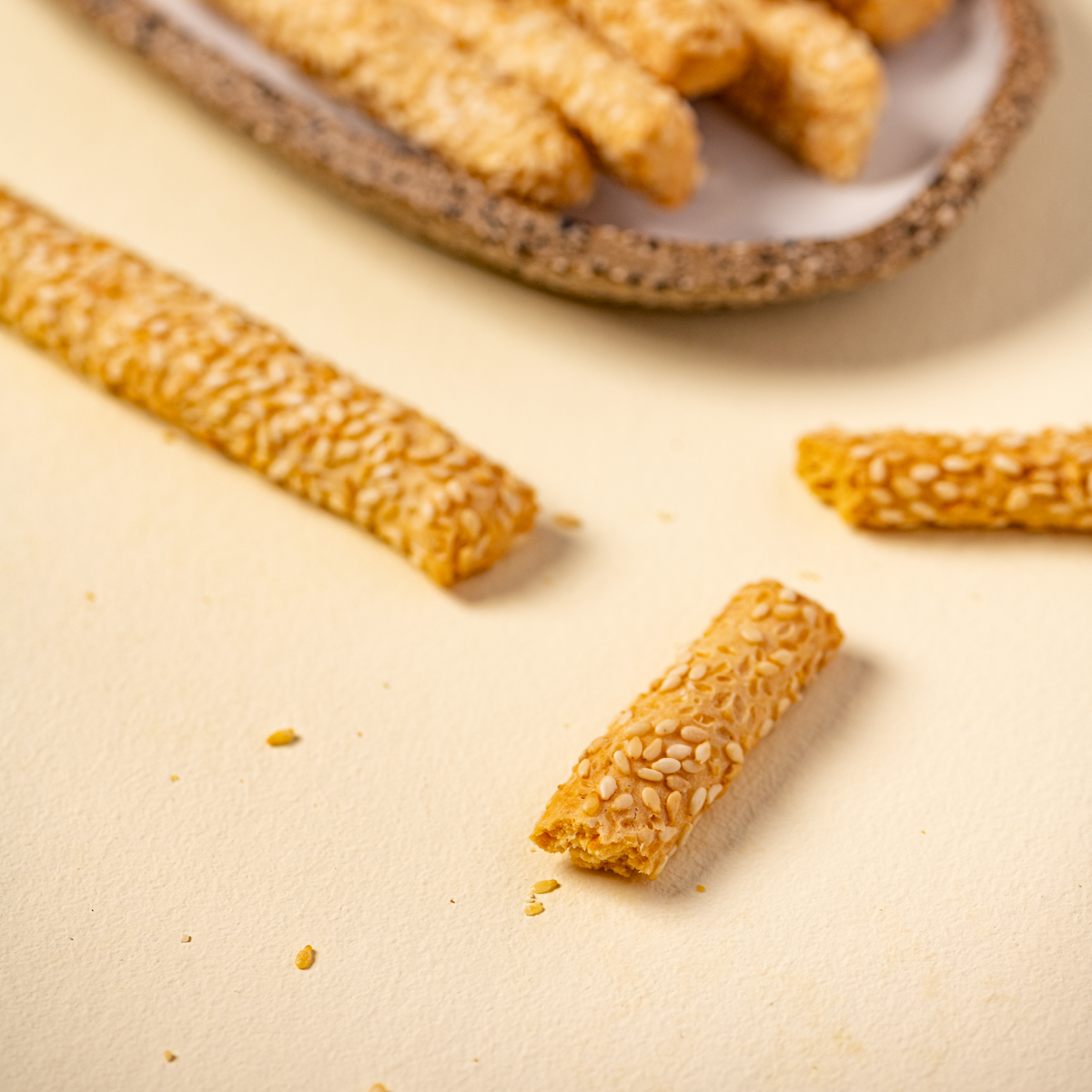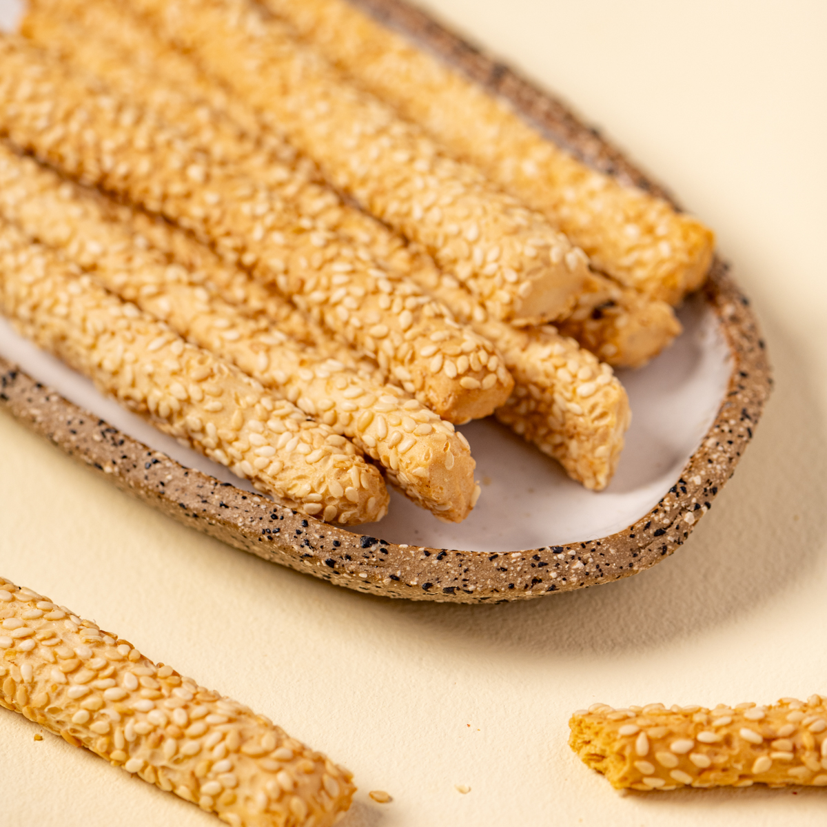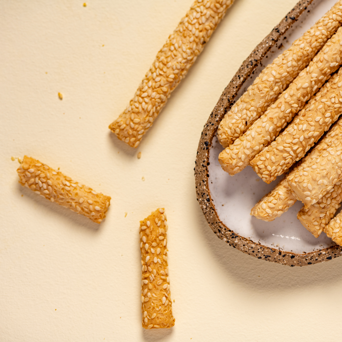 Τραγανά, χειροποίητα κριτσίνια με πλούσια επικάλυψη από εκλεκτό σουσάμι. Προσφέρουν μοναδική γεύση και άρωμα σε κάθε μπουκιά.